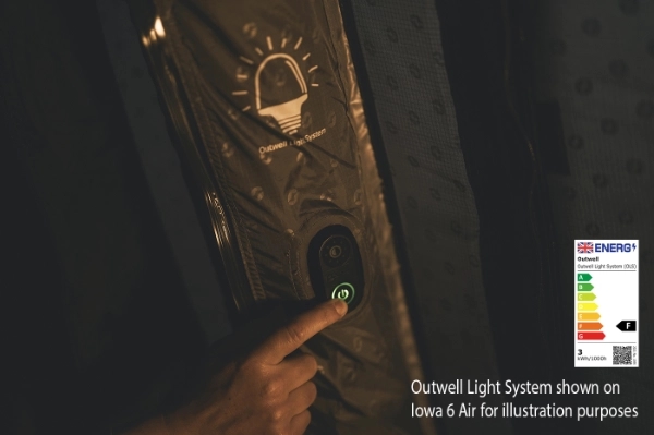 • Unik integreret patentansøgt Outwell Light System giver elegant og effektiv belysning inde i teltet. Drevet af enhver USB-C strømkilde (strømkilde ikke inkluderet).