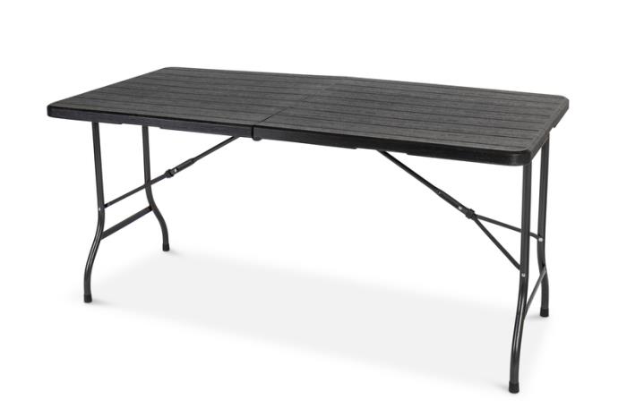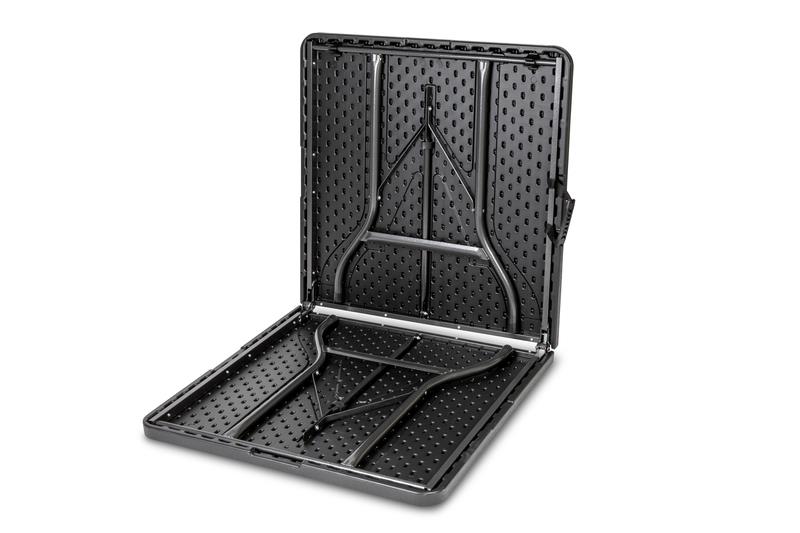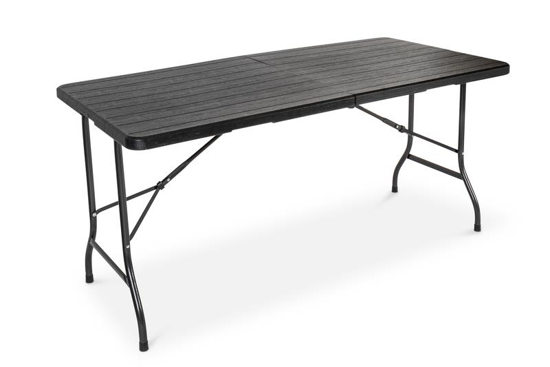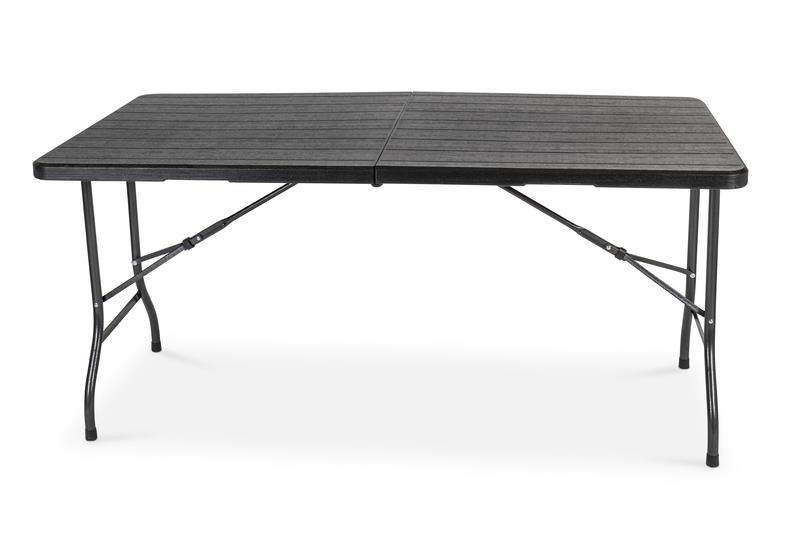 Robust og let at vedligeholde bord til camping, havefester og loppemarkeder. Absolut vejrbestandigt takket være det pulverlakerede stålrørsstel. Med tidsløs sort korn.