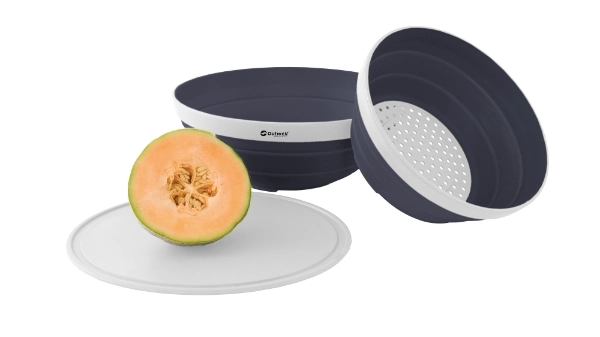 • Sammenklappelig skål inkl. låg og si, kan pakkes sammen