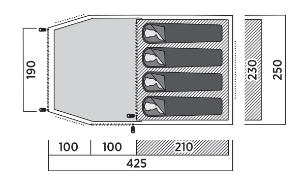Hemsedal 4 er et tunneltelt designet til maksimal komfort og bekvemmelighed. Det rummelige forrum giver plads til opbevaring, mens ventilation foran og bagpå sikrer frisk luft. SleepTight-inderteltet giver en behagelig søvn, selv om morgenen og aftenen. Med fleksible front- og sideindgange og en aftagelig bund er det ideelt til cykel- og motorcykelture, så du kan tilpasse teltet til dine behov og eventyr.