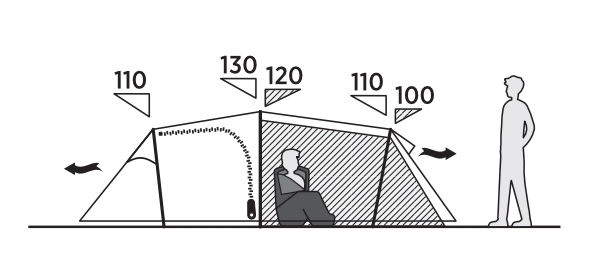 • Ventilation i front og bag på teltet