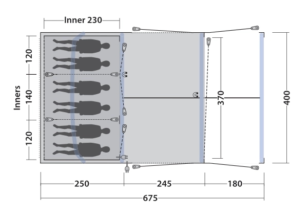 • Klar til det unikke, indbyggede Outwell Nightlight System (patenteret), der giver en hyggelig belysning samt nem adgang og orientering.