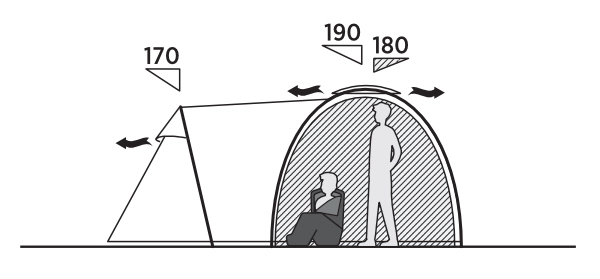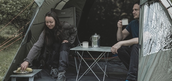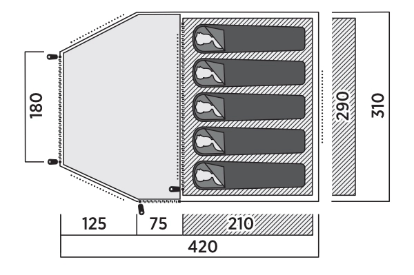 Kinn 5 er et kuppeltelt med en frontindgang, der leder til et rummeligt forrum, perfekt som opbevaringsområde. SleepTight-inderteltet, designet med mørkere materialer og optimal ventilation, sikrer en behagelig søvn om morgenen og tidligt på aftenen. Teltet har vinduer på begge sider med optrækkelige gardiner, der giver lys og privatliv, mens den aftagelige badekar-bund kan fjernes for at reducere vægt og pakkestørrelse. Dette gør Kinn 5 til et alsidigt og praktisk valg til alle slags udendørs eventyr.