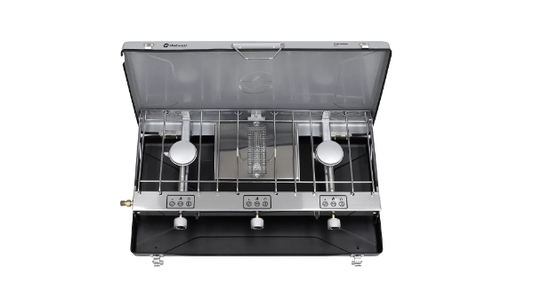 Kirishima Trio har nu tre individuelt styrede brændere, hvoraf det midterste blus er perfekt til grillning. Det kompakte design gør den nem at transportere, hvilket gør den ideel til madlavning på campingpladsen, fra morgenmad til aftensmad. Låget beskytter mod vinden fra én side, hvilket gør den til et godt valg til familiecamping eller som supplement til din kulgrill. Den tilsluttes sikkert til en LPG-gasflaske (slange medfølger ikke) og har skridsikre gummifødder for ekstra stabilitet. Komfuret har også automatisk piezotænding, en aftagelig og let at rengøre grillplade med drypbakke og holdbare knapper i zinklegering til præcis varmejustering.