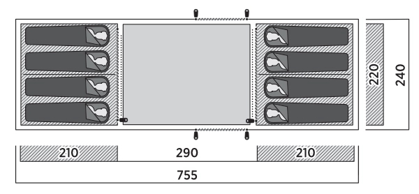 Leka Twin 8 er ideelt til venner og større familier, der har brug for plads og fleksibilitet. Teltet har et vis-a-vis-design med et rummeligt opholdsrum og separate soveværelser i hver ende. Vinduer på begge sider med optrækkelige gardiner og to modstående indgange giver lys, ventilation og nem adgang. SleepTight-inderteltet, designet med mørkere materialer og optimal ventilation, sikrer nattesøvnen. Dækket ventilation i begge ender giver mulighed for justerbar luftgennemstrømning, mens ståhøjde i opholdsrummet og praktiske guyliner-holdere tilføjer ekstra komfort og bekvemmelighed.