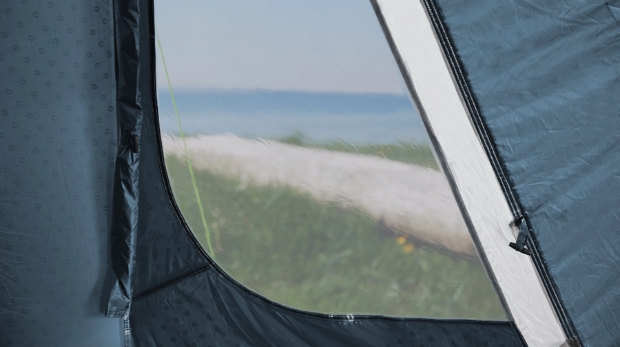 Outwell Cloud 2 har et integreret isyet indertelt med en bund, der forhindrer træk og kravlende insekter. Ventilationen bagest i teltet sikrer en kontinuerlig luftgennemstrømning og minimerer kondensdannelse, hvilket skaber et behageligt og sundt indeklima.