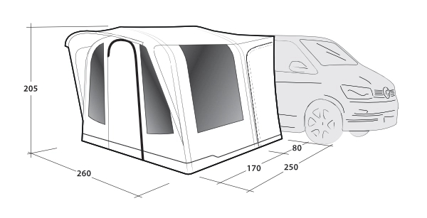 Det kompakte, oppustelige Outwell Santa Monica Air drive-away fortelt er perfekt til par, små familier, venner og solo-campister. Det giver alsidig ekstra opholdsområde og valgfrit soveplads på campingpladsen. Fleksibel adgang tilbydes via sidedøre på begge sider af Link Access Zone, som forbinder det til din campervan, sammen med en let håndterbar J-dør foran, dækket af et praktisk canopy. Insektbestandigt net bag den forreste dør muliggør nem og hurtig justering af ventilationen. Når du tager ud på eventyr, kan du lade forteltet stå frit og sikkert på din plads, klar til at byde dig velkommen hjem, når du vender tilbage.