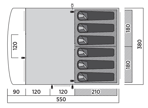 Skarvan 6 er et rummeligt og funktionelt familietelt, perfekt til uforglemmelige campingeventyr. Det har et stort opholdsrum, en regnsikker frontindgang og opdelte soveværelser, der kan fjernes efter behov. SleepTight-inderteltet, designet med mørkere materialer og optimal ventilation, sikrer nattesøvnen. Den fastsyede bund holder træk og insekter ude, mens organiseringslommer og adgang til strøm øger bekvemmeligheden. Med en fleksibel sideindgang, fuld netdør og vinduer med optrækkelige gardiner og netpaneler giver Skarvan 6 fremragende ventilation og komfort på enhver tur.
