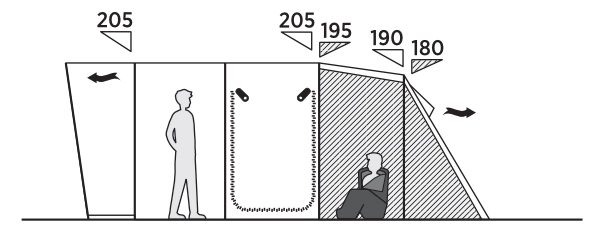 • Vinduer foran og i siden af teltet med fikspunktgardiner