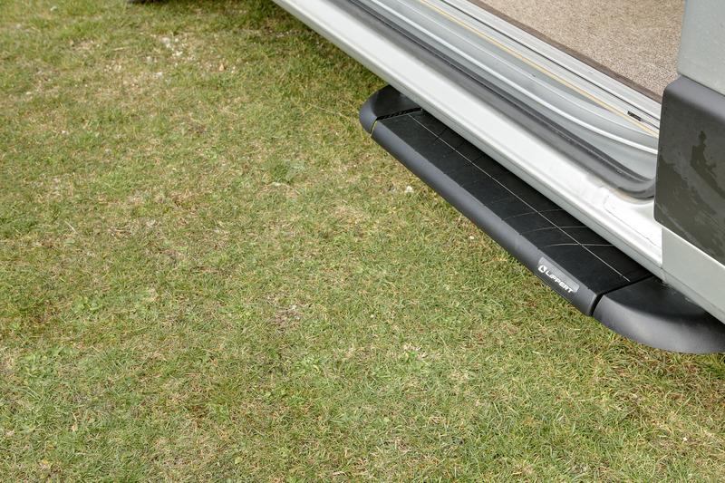 Med kraftfuld 12 V motor til udskydning af trinnet på kun 2,5 sekunder. Forud monteret beslag og ledningskabel inkluderet til hurtig installation. Overfladen giver et moderne design samt en pålidelig skridsikker funktion.