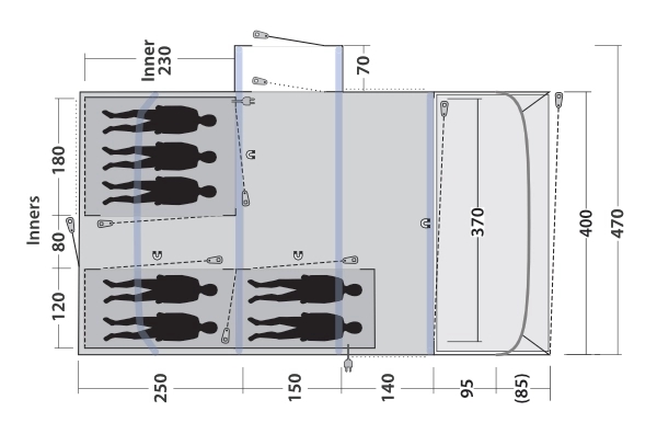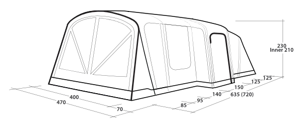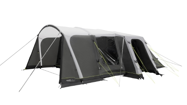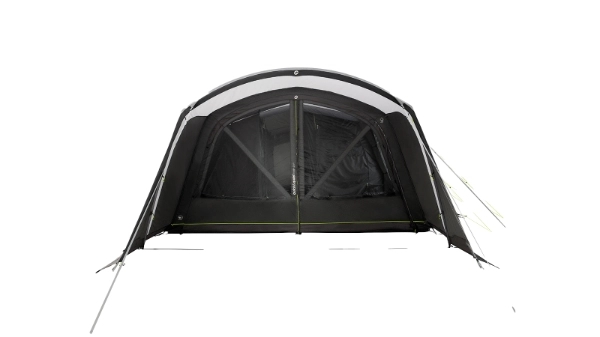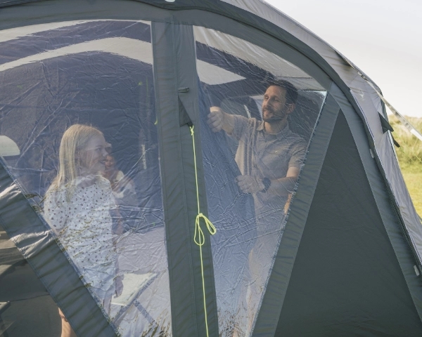 Vermont 7 Air teltet skiller sig ud med sit rummelige og moderne design. Du kan nemt komme ind i teltet via fordøren, sidedøren eller bagdøren. Det to-personers indvendige rum kan pakkes væk for at skabe mere plads i opholdsområdet. Store vinduer sørger for masser af lys indenfor, og sideforteltet giver en beskyttet indgang. Med god loftshøjde og masser af gulvplads er dette telt perfekt til afslapning og kvalitetstid med familie og venner.