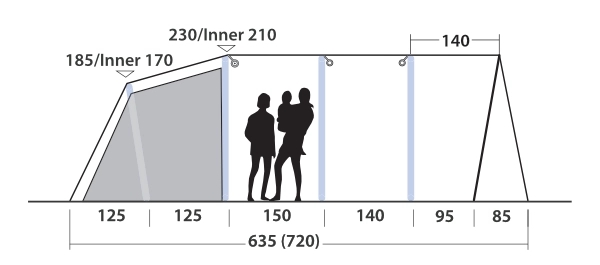 • Formede luftstænger sikrer god ståhøjde og rummelighed i teltet