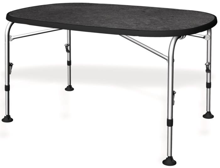 Et camping- eller gårdhavebord med format. 4 højdejusterbare fødder er nemme at betjene ved hjælp af en excentrisk lås. Høj stabilitet af bordet og en meget nem at bruge excentrisk låsning af benene og dens brede pladefødder er ideelle selv for bløde overflader. Materialeramme: aluminium.